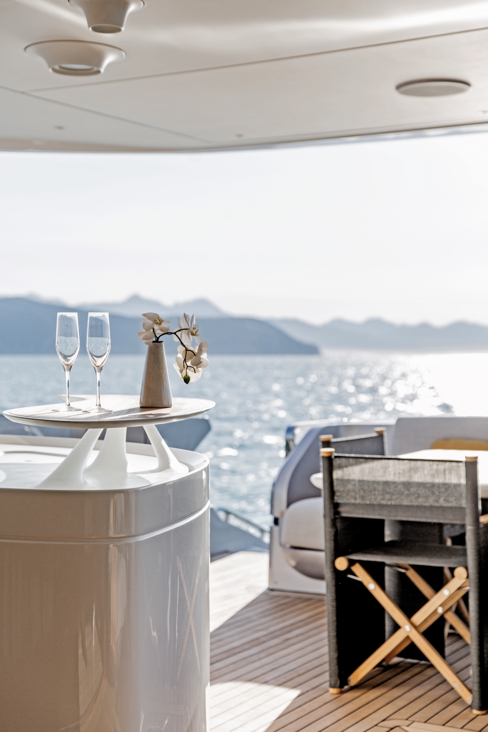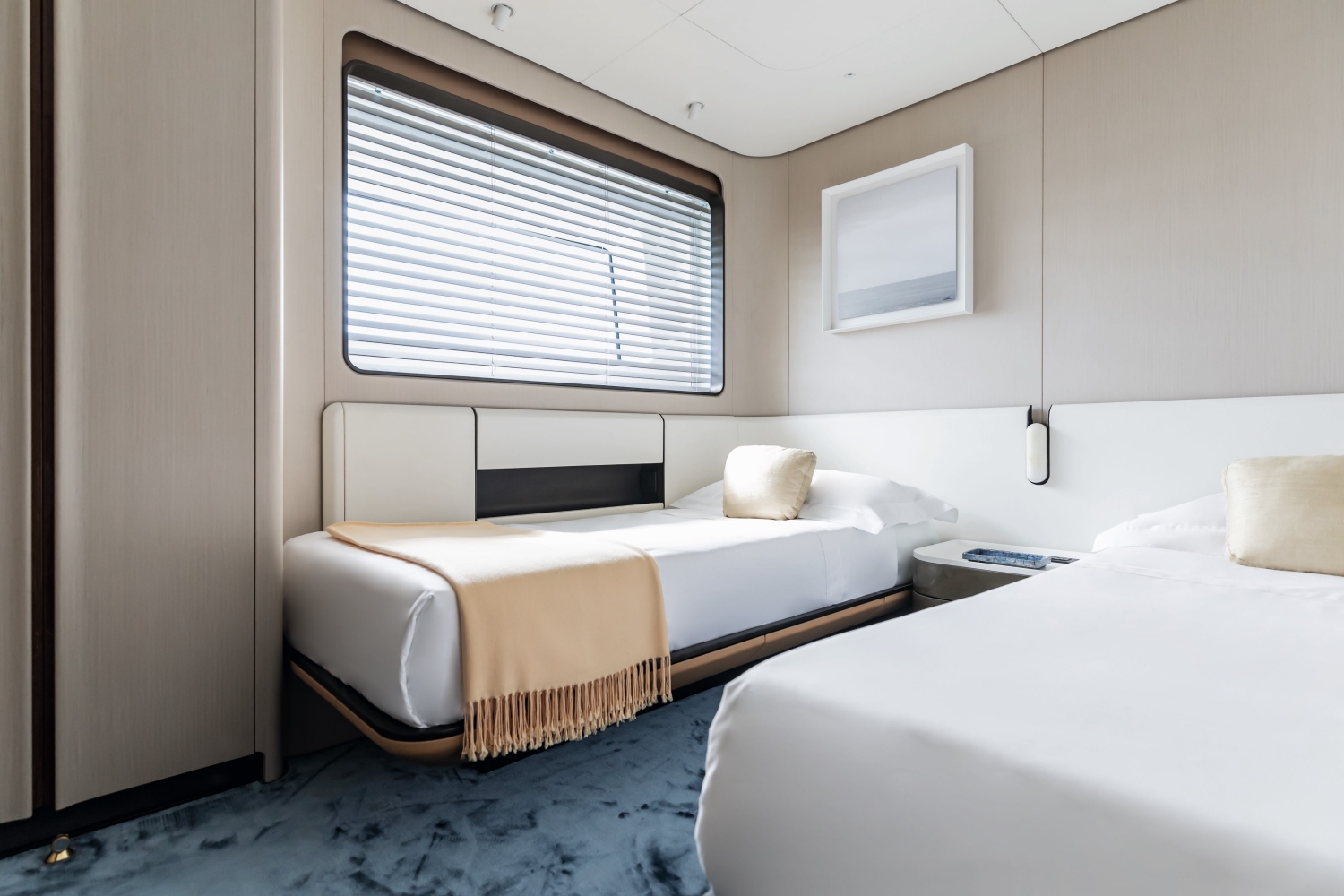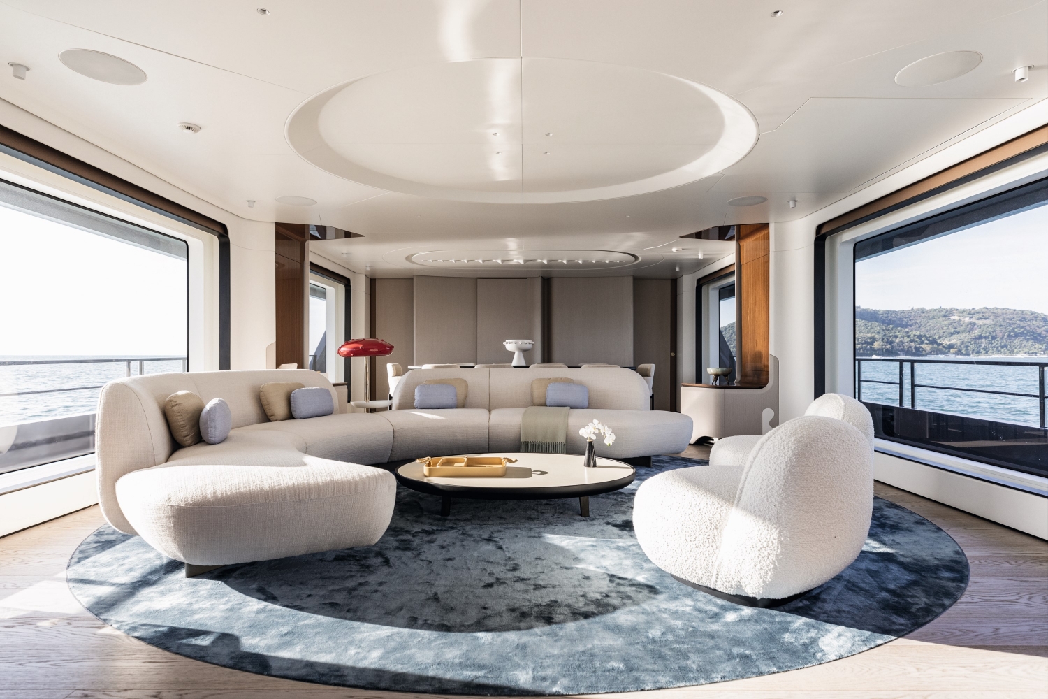 From the unprecedented semi-walkaround upper deck inspiring freedom of movement to the fully retractable side window posing a special gateway to the sea, all elements contribute to visually blend interior and exterior spaces. A barrierless lifestyle naturally blurs the boundaries between onboard pleasure and oceanic greatness.Free your soul with the Grande 36M.