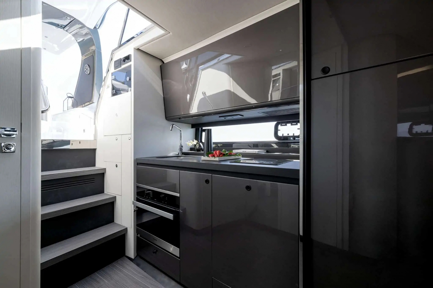 Forward-facing and adrenalinic, this performance-driven outboard yacht incorporates a fast and compact nature, while cultivating a contemporary sense of luxury on board.