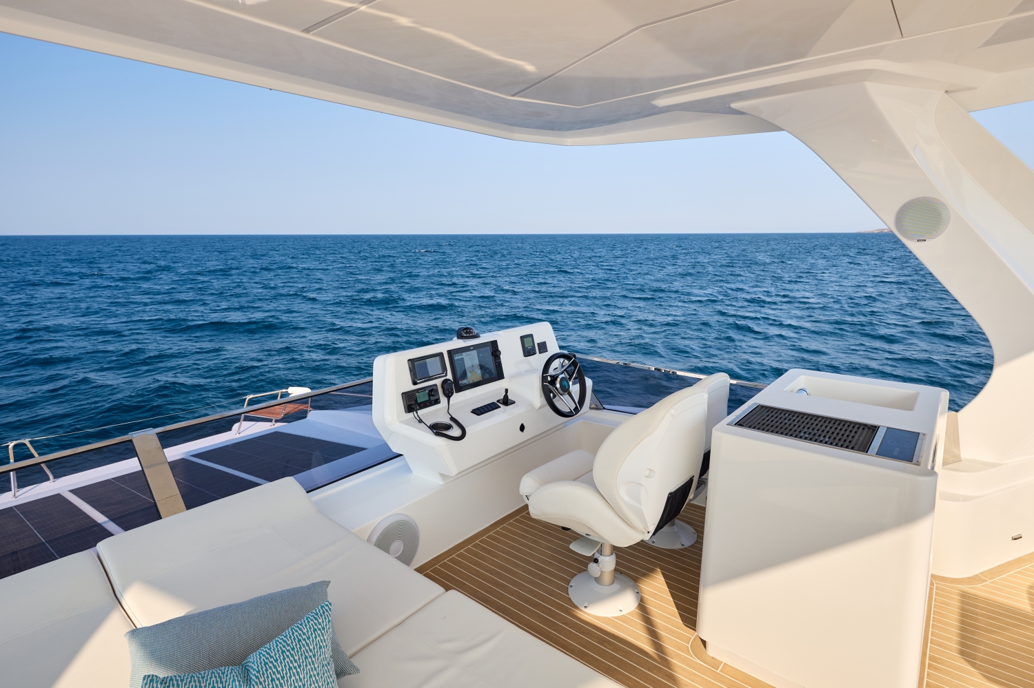 Omaya yachts are setting a new standard for luxury power catamarans built for the Mediterranean. This new shipyard uses their 30 years of precision industrial engineering to achieve a level of quality unmatched in this style of yacht, and a focus of spacious exteriors makes the Omaya 50 the perfect power cat for the Mediterranean climate.